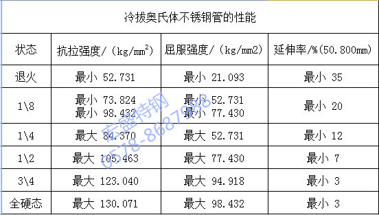 由于冷加工引起的加工硬化,就意味著在隨后成型加工要進行回火處理。所以回火對成型加工方法和費用由著直接的影響。人們都知道,當金屬接近或低于室溫變形時,就會產生硬化,使金屬材料的強度和硬度增高。實際上,并不是所有的不銹鋼鋼管都能進行希望的成型加工的。如鐵素體400系列不銹鋼管,在冷加工時,只能有較小的變形量,否則就會發生突然破壞或開裂。像430和446不銹鋼管真身就有缺口敏感性,因此它們的供貨狀態應為退火狀態。當必須對它們進行成型加工時,必須進行回火處理。硬化馬氏體鋼也是以退火狀態供貨,否則這些鋼種就是以常化加固化,或者以淬火加固化狀態交貨。然而奧氏體不銹鋼管,它們能在較大的冷加工硬度范圍供貨。下標列出了與奧氏體300系不銹鋼管各種回火有關的機械性能,并不是所有尺寸和鋼種的奧氏體不銹鋼鋼管在回火后都可以加工成型。含合金量較少的201、202、301、302、304等鋼種非常適合冷拔;對于合金含量較高、冷加工硬化速率低的鋼種,并沒有廣泛地用于生產大于1/2冷作硬化狀態的回火產品。305、316、317和310鋼屬于后一類。隨著鎳含量的增加,加工硬化的趨勢就會減輕。
